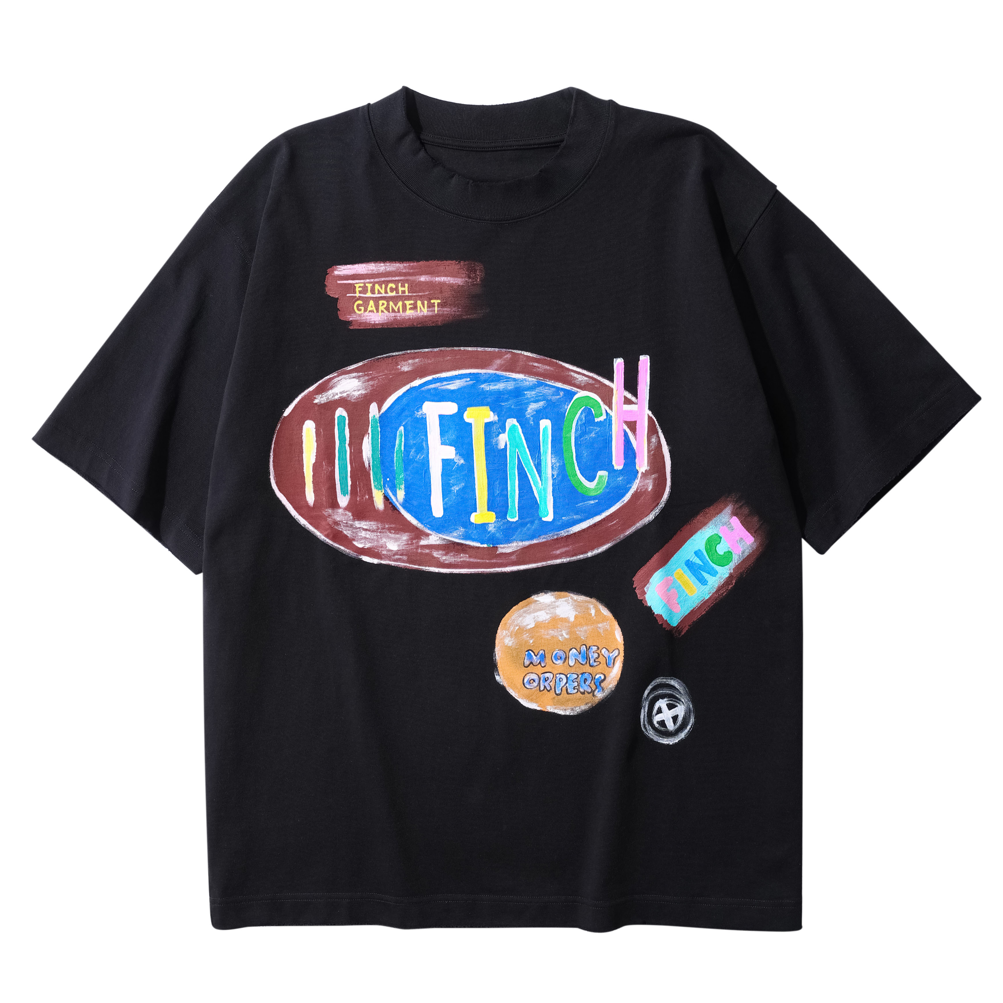 Finch Garment Cut and Sew T-shirt Vintage Custom Graphic Print Logo Men Oversized 100% Cotton Drop Shoulder Streetwear T Shirts