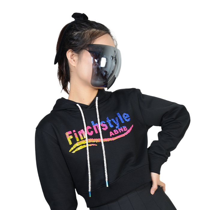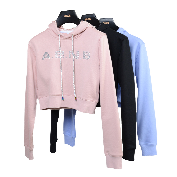 Finch Garment solid cropped hoodie rhinestone hooded sweatshirts women crop top hoodies