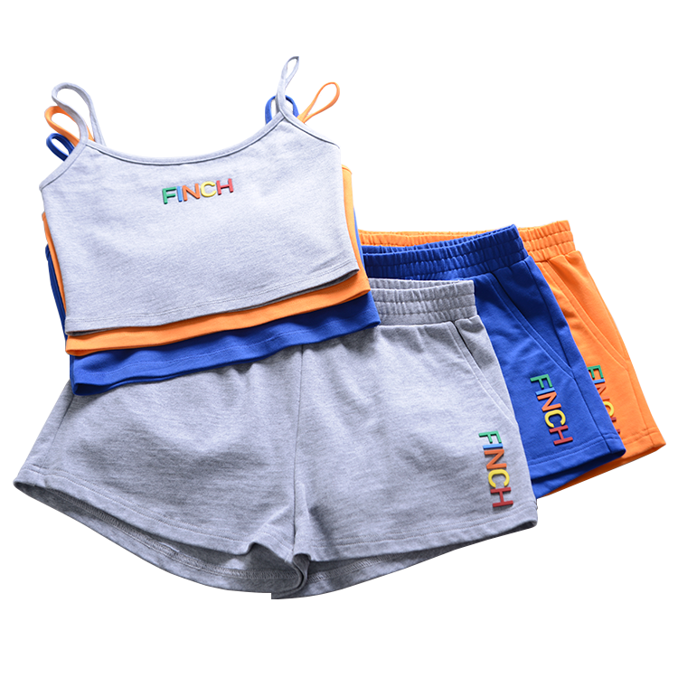 Finch garment new 3d raised rubber logo printing women sweatsuit short women tracksuit shorts and tank top set