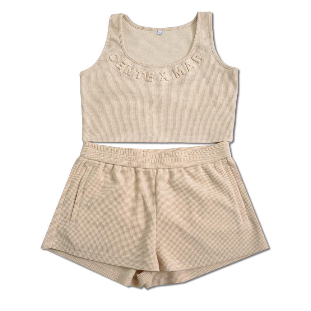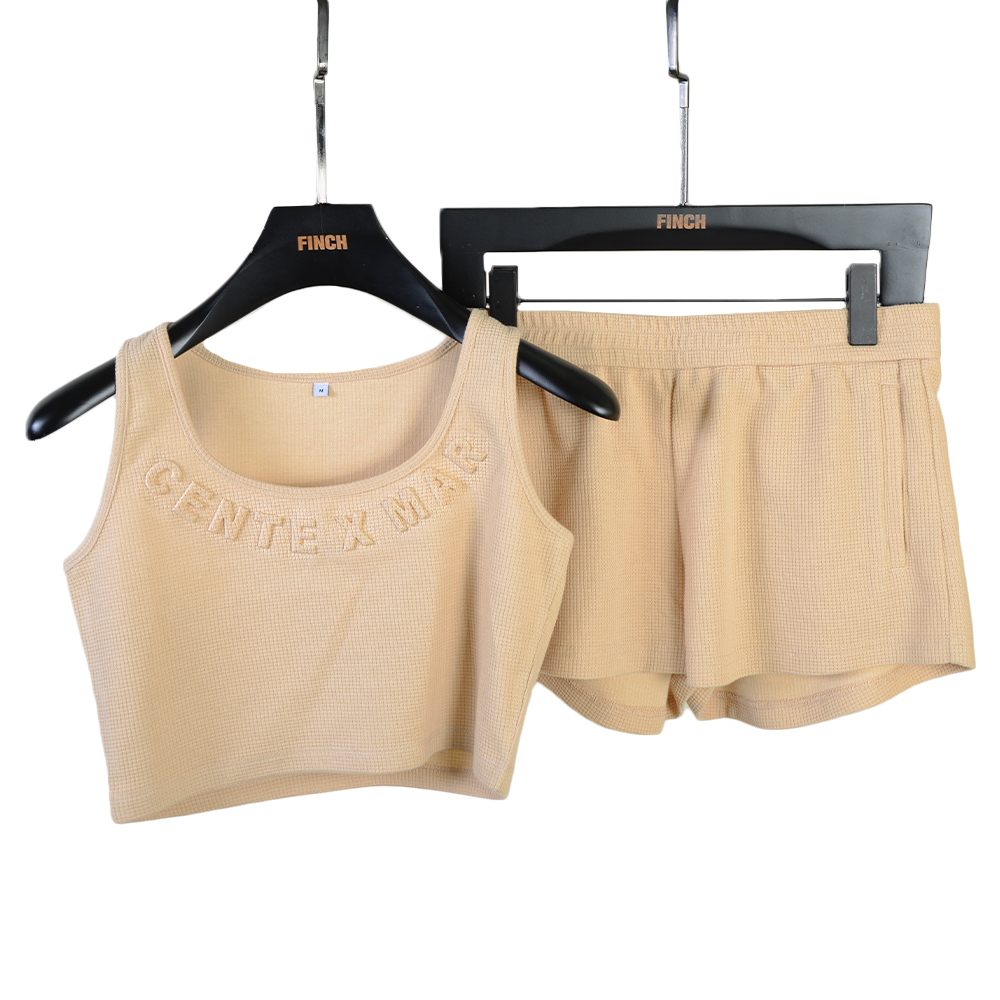Finch Garment Women Waffle Knit Crop Top T Shirt shorts Two Piece Jogger Sports Suit Ladies Luxury Embossed Logo Sets