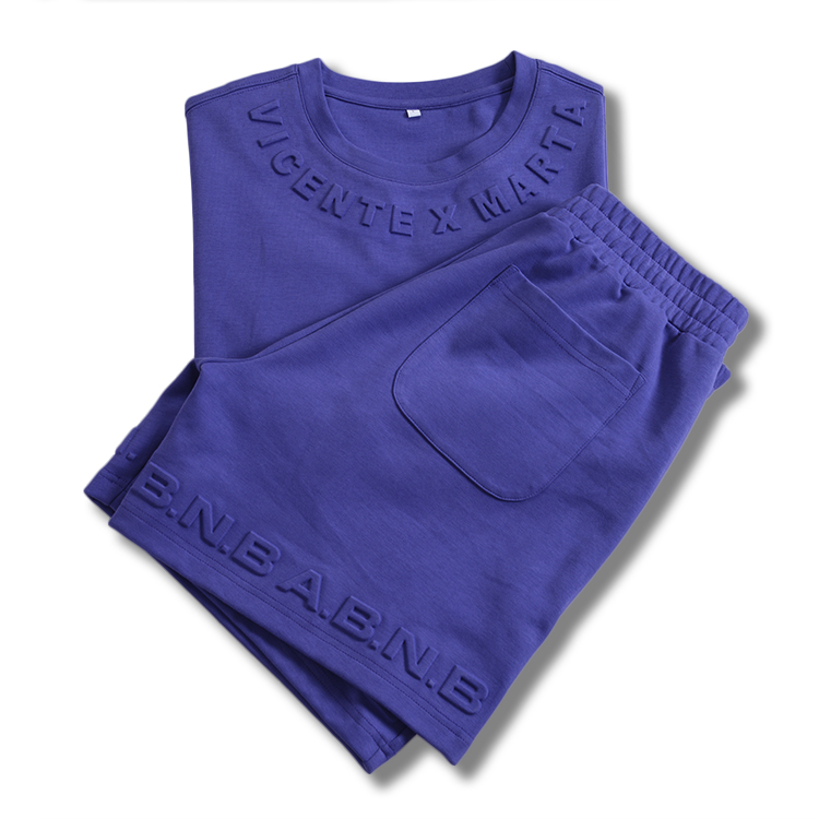 Finch Garment custom solid embossed short sets men's tracksuits summer cotton t shirts and short embossed short set